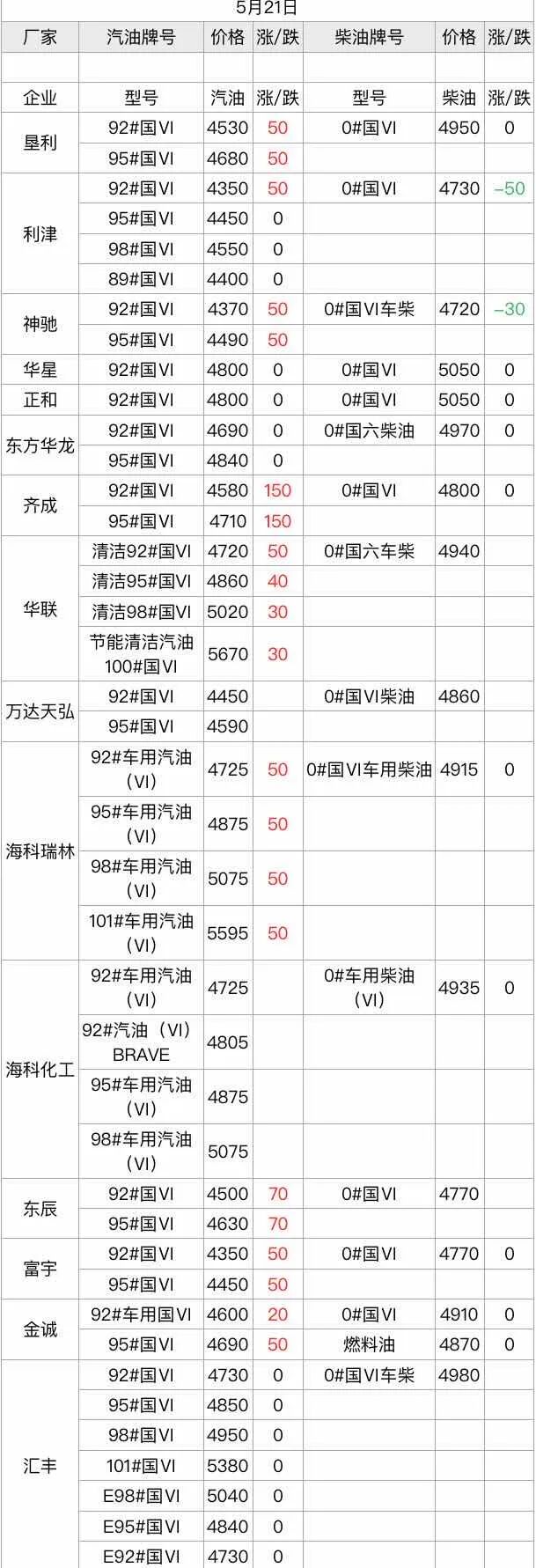 第六条 当国际市场原油价格低于每桶40美元(含)时,按原油价格每桶40美元、正常加工利润率计算成品油价格。 第七条 国内汽柴油价格根据国际市场原油价格变化每10个工作日调整一次,调价生效时间为调价发布日24时,当调价幅度低于每吨50元时,不作调整,纳入下次调价时累加或冲抵。 |