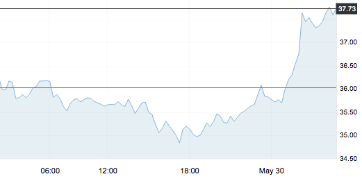 周五布油涨近5%;美油涨5.28%,站上35美元,5月份累计上涨88.4%,创历史上最大单月涨幅。市场密切关注国际地缘政治局势,美国原油钻井数量持续减少,暗示美国原油产量将继续下滑。