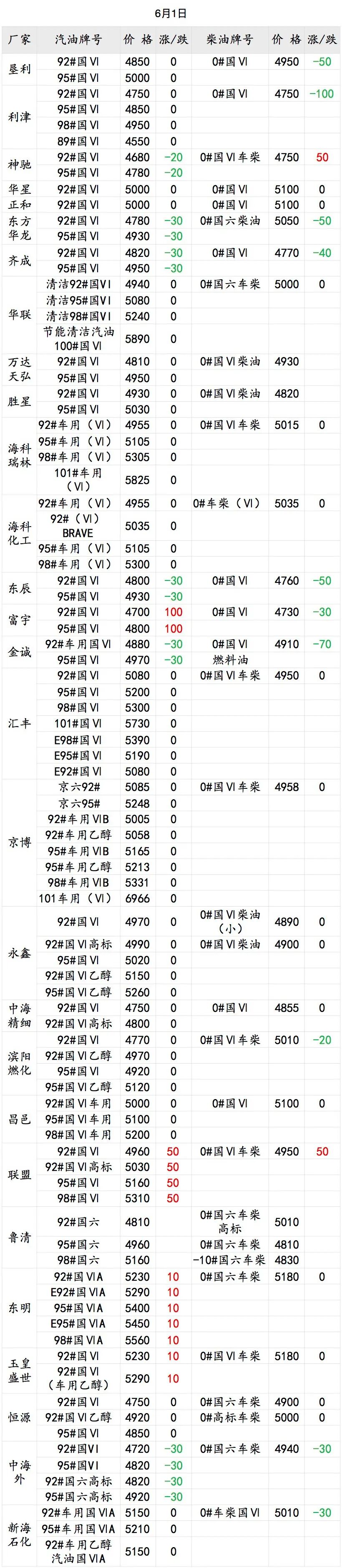 金联创测算,截至6月1日第二个工作日,参考原油品种均价为34.90美元/桶,变化率为3.28%,对应的汽柴油应上调95元/吨。根据“十个工作日”原则,本轮调价窗口为6月11日24时,预计本轮零售价继续停调概率较大。