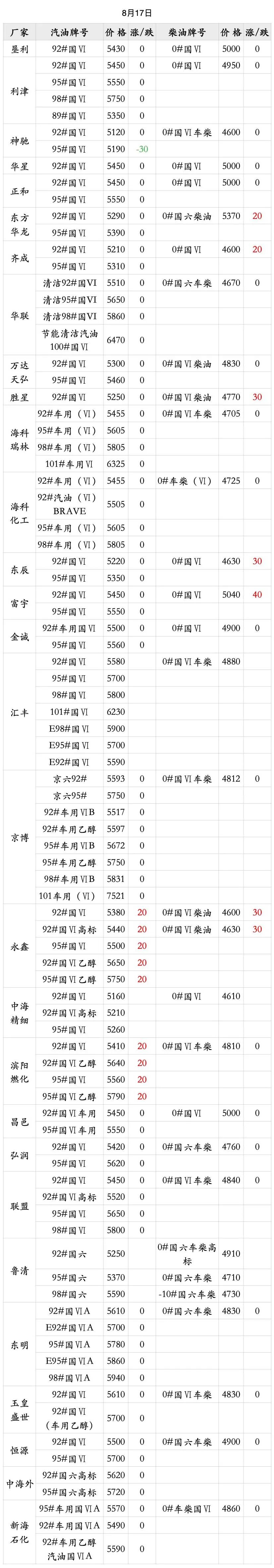 上周地炼跌至低位,周末下游补货增多,柴油出货好转,市场成交活跃。昨日整体稳中上涨20-50元/吨,其中柴油小幅上调厂家更多,但出货已开始有所减弱。短期内山东地炼或持续窄幅震荡,幅度在50元/吨上下。长期来看,九月份降雨减少,需求向好,行情或存上行预期。