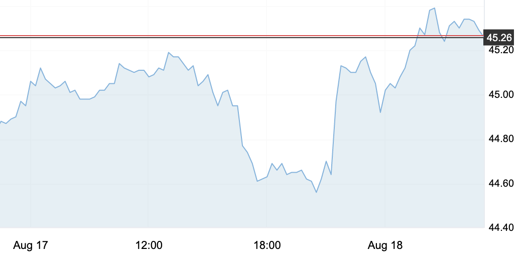 周一美油收高2.1%,布油上涨1.3%,摆脱了早盘下跌局面。据报道中国将增加海外原油进口量、OPEC+成员国上个月大多遵守产量配额,令油价得到支撑。早盘因美元指数收复部分跌幅,市场仍担心病毒大流行后需求复苏放缓和供应增加,油价一度走低。