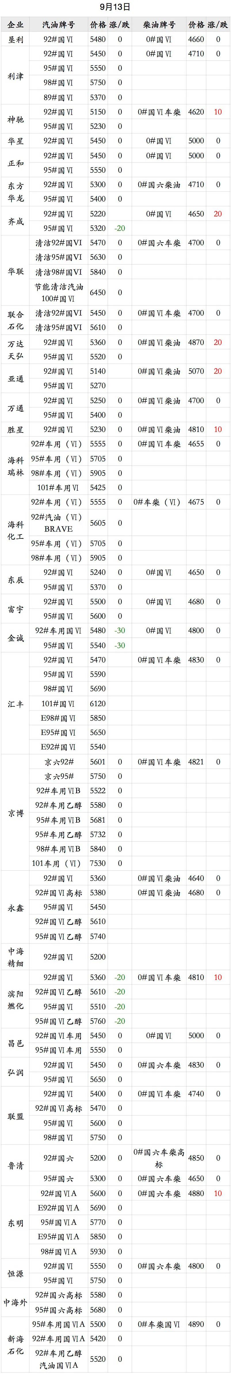 周末山东炼厂少数调整幅度在50元/吨之内。汽油齐成、金诚、汇丰、滨阳燃化等下调10-30元/吨。柴油神驰、齐成、尚能、东明等上调20元/吨。下游客户阶段性集中补货接近尾声,成交氛围表现一般。